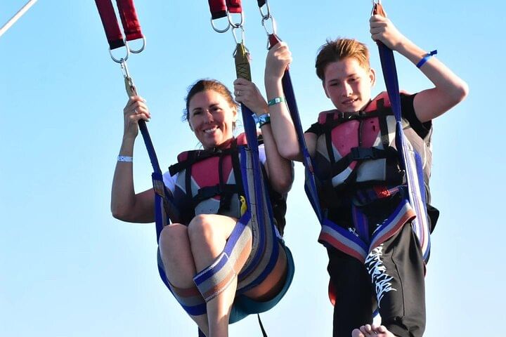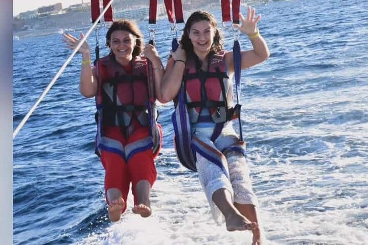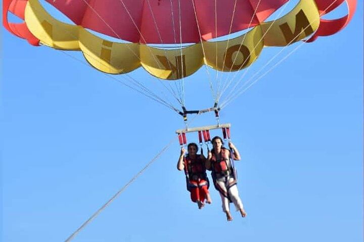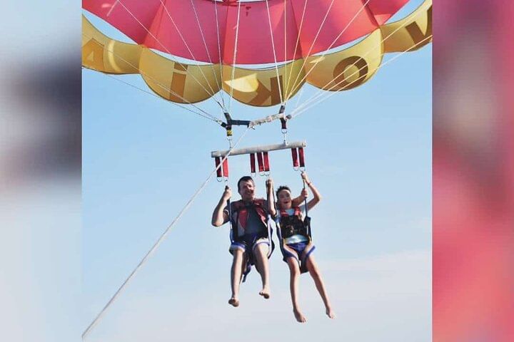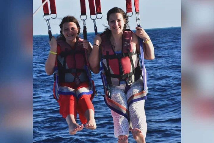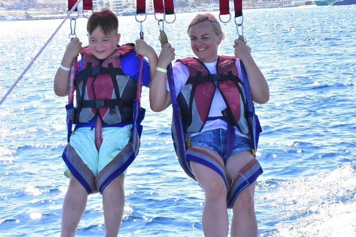 A representative will pick you up from your Hurghada hotel and transport you to the Marina. Try parasailing, a thrilling activity in which you and a companion are dragged behind a boat while wearing parachute harnesses and soar up to 30-40 meters in the air for 5 minutes (unless your combined weight exceeds 150 kg, in which case you must fly solo).