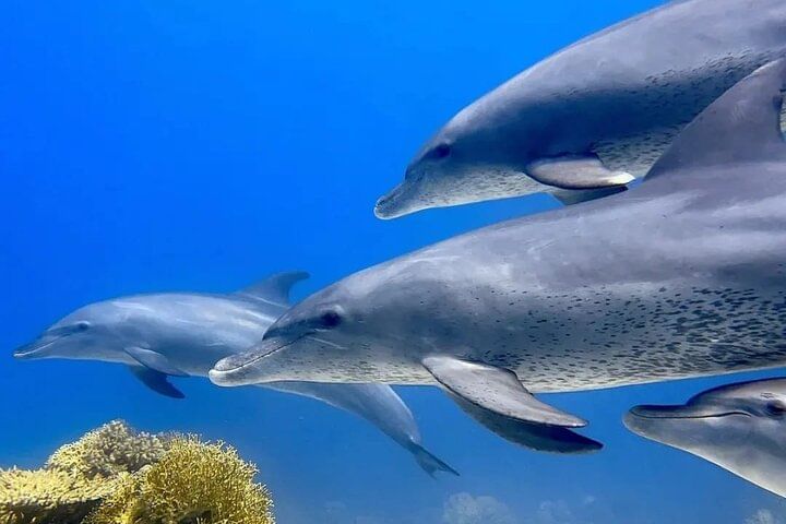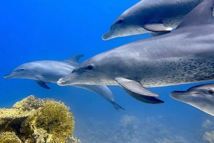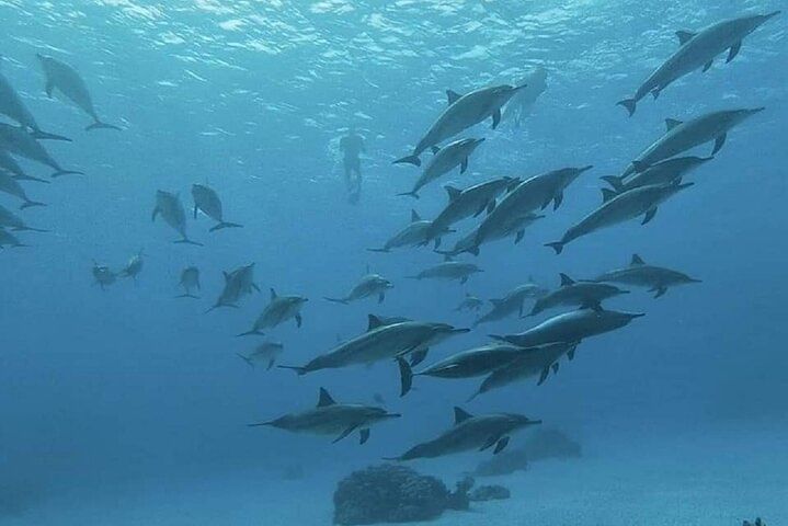 After getting picked up at the hotel, take a boat to the Red Sea. Take a one-hour trip to Dolphin House to explore the reef's underwater treasures. Grab a snorkel and discover an alien habitat beneath the waves, amazed by the colors and diversity of the aquatic life. Relax with an excellent lunch prepared and served on board. The Dolphin House is unquestionably the most popular stop on any of our Red Sea cruises. There is a considerable chance you will see several dolphins, but success is not guaranteed. Jump off the boat at various points to snorkel and explore the vast range of species that live in this fragile environment. Admire the vibrant colors and unusual shapes.