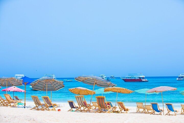 Visit the brand-new Orange Island, which is part of the Giftun Islands, and take a guided snorkelling excursion by yacht from Hurghada to observe the Red Sea coral reefs and unusual marine life. Before relaxing for two hours on the island with full access to all facilities, have lunch.